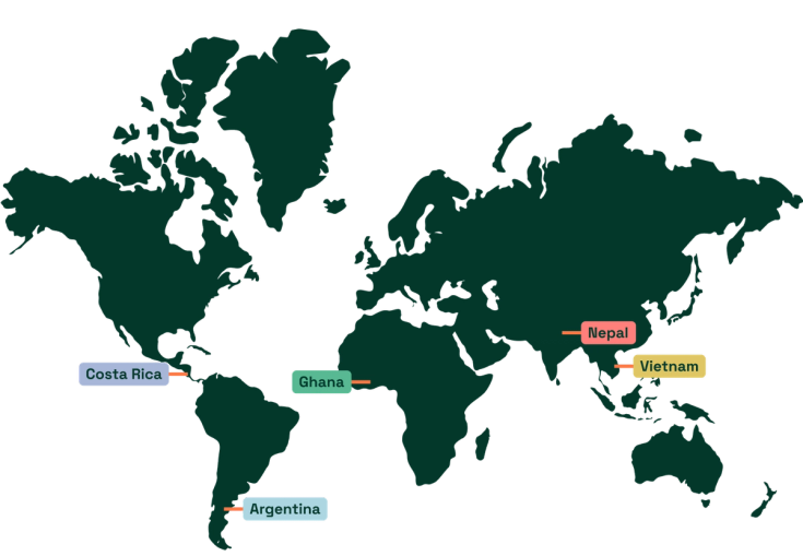 Study in Argentina, Costa Rica, Ghana, Nepal and Vietnam.